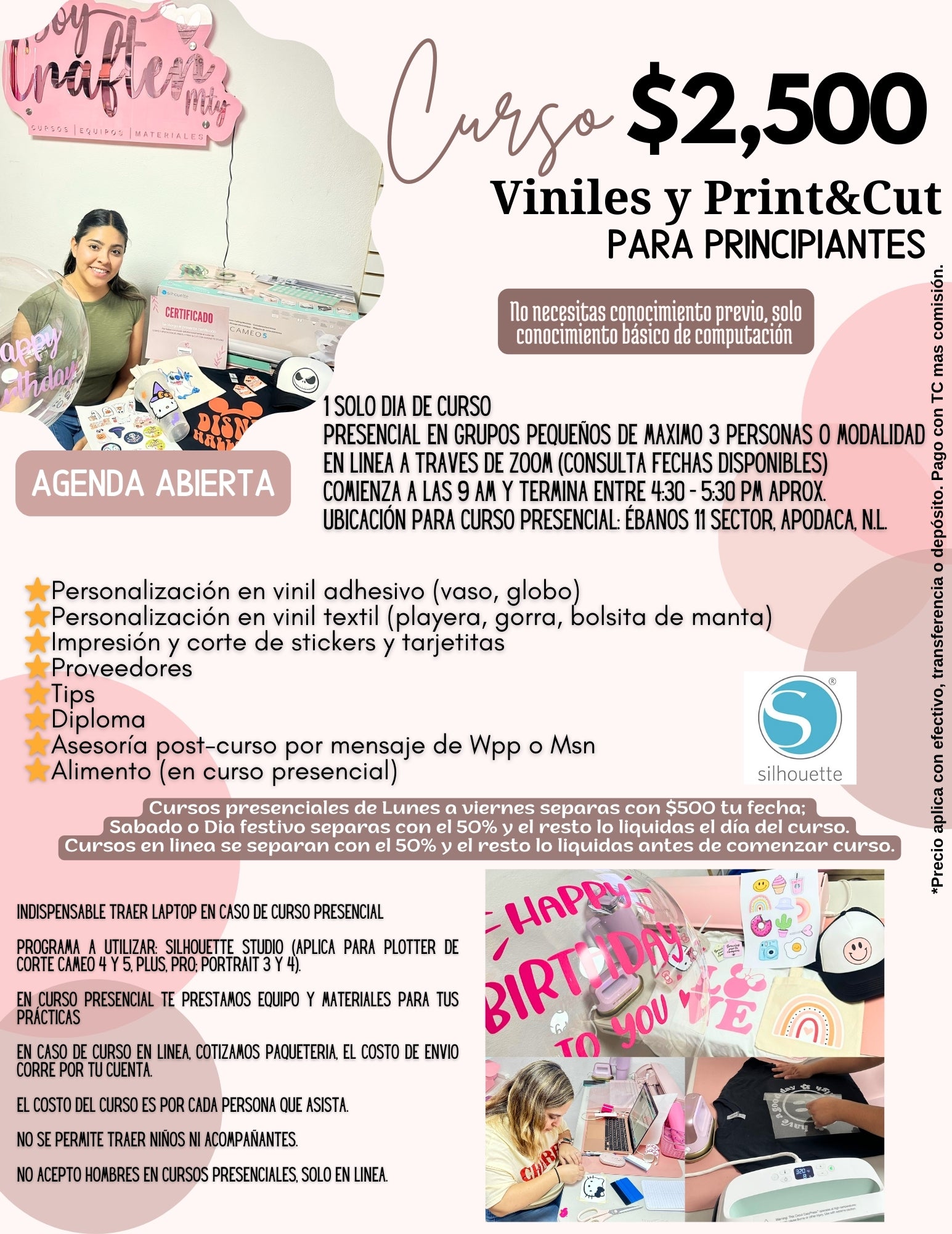Aplica al curso si tienes Cameo o Portrait, o quieres adquirir tu equipo aquí con nosotros, o si estas interesada en aprender y no cuentas con equipo, te prestamos el equipo en el curso sin costo adicional. - No aplicar a este curso si tienes un plotter de otra marca distinta, no Cricut, ni ScanNCut, ni otra marca; el curso solo es para Cameo o Portrait.